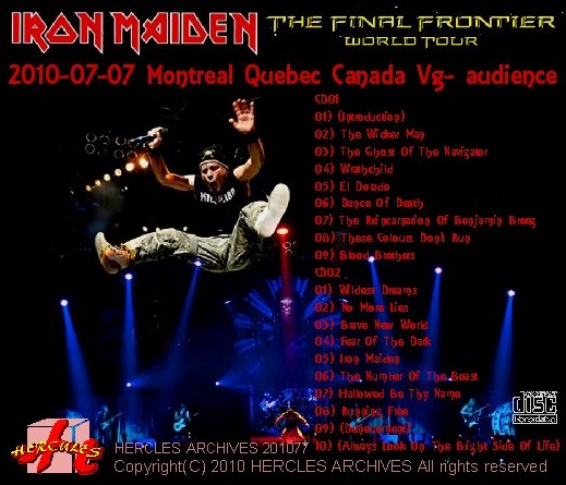 商品説明: 結成30周年記念アルバム「The final frontier 」リリースに伴うIron Maiden - The final frontier world tour 2010の7月7日Montreal, Quebec, CanadaでのコレクターズCDとなります。