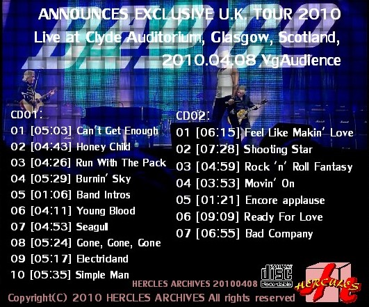 Bad Company(バッド・カンパニー2010年ヨーロッパツアー)Glasgow, Scotland, 2010.04.08